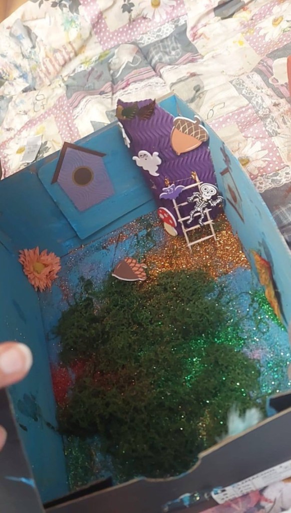 Am Montag, den 6. Oktober begann unser Herbstferienspaß. Trotz einiger Probleme begann sie erfolgreich mit 20 Kindern. Die Motivation war riesig, als uns morgens eine kleine Hexe besuchte, welche leider den Weg nachhause nicht mehr fand. Die Kinder kamen auf eine geniale Idee! Wir bastelten ihre herbstliche Heimatstadt in unseren kleinen Schuhkartons nach, damit sie sich errinern konnte