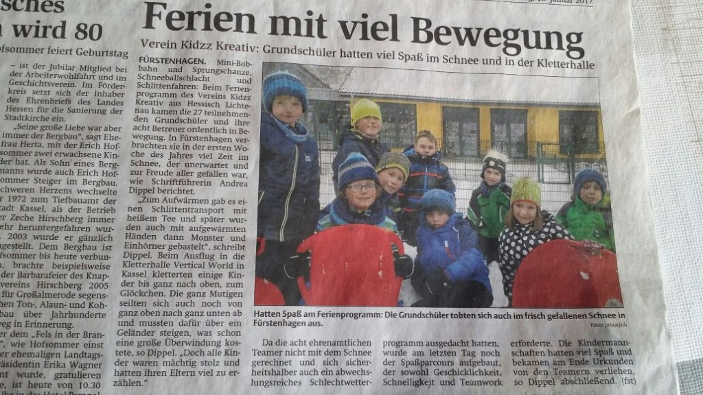 Narretei statt Wintersport: Bei den winterlichen Ferienspielen mussten die Kinder zwar auf Schnee verzichten, die Betreuerinnen bescherten ihnen aber einen kleinen Karneval. Der Karneval gehört bei den Winterferienspielen in Fürstenhagen mit dazu. In heldenhaften und tierischen Verkleidungen hüpfen und toben die Kinder durch die Räume des Fördervereins in der Grundschule am Fischbach in Fürstenhagen. Auch in den Winterferien konnte der Kidzz Kreativ wieder eine Ferienbetreuung auf die Beine stellen. Wie bei allen Ferienspielen stand auch hier das Spielerlebnis im Mittelpunkt. Auf dem großen Gelände der Grundschule und Feuerwehr Fürstenhagen gab es neben dem Fußballplatz zudem Möglichkeiten viele Spiele zu spielen, zu basteln und letztendlich sich zu Verkleiden. „Alle Kinder wollten unbedingt eine kleine Karnevalsparty veranstalten“, berichtete Vereinsvorsitzende Sandra Mankowski, die bei der Ferienbetreuung mit anpackt. Neben Bastelaktionen und großen Spielen folgte zum Abschluss der Spiele am Freitag der Besuch der Spinnenausstellung im Kasseler Naturkundemuseum.