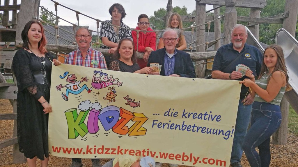 Vertreter des Lions-Clubs und der Kaufmann-Stiftung ließen sich an der Mehrzweckhalle über die Verwendung der Spenden informieren. Ein Paket von Aktionen stellte das Kiddz-Team vor, das zum Start in die Sommerferien vor Ort die letzten Vorbereitungen erledigt hatte, um am Montagmorgen in die Betreuung der Kinder aus den Grundschulen des Stadtgebiets einsteigen zu können.